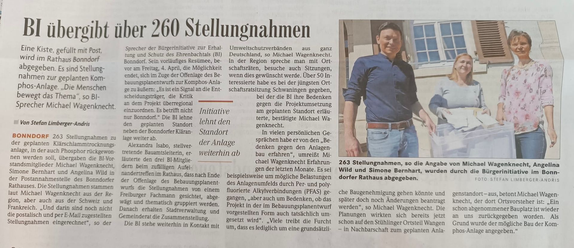 Wir sind sehr zuversichtlich und heben das Thema KomPhos Anlage bis auf die Ebene des Landtag von B.W.