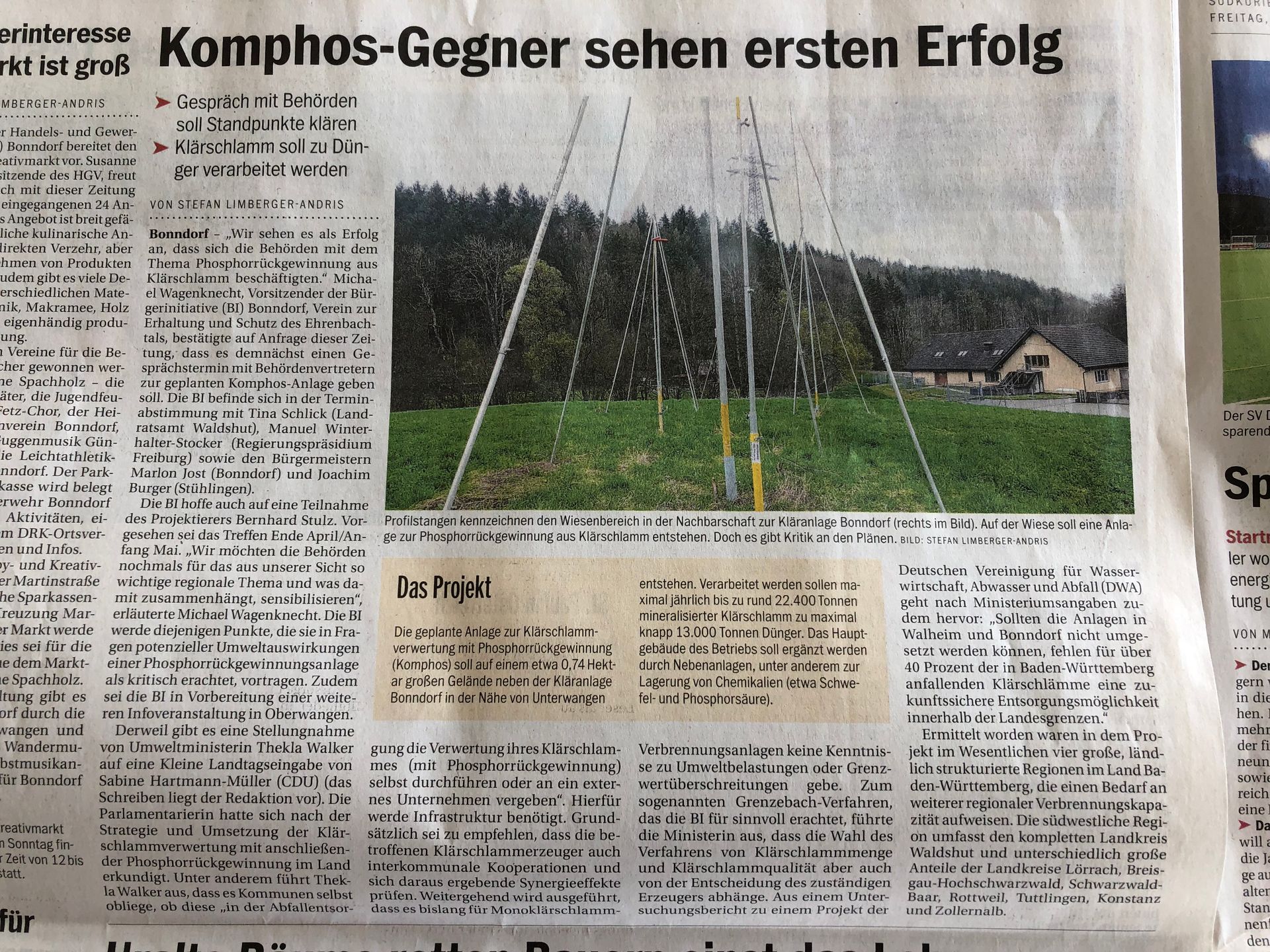 Die Stadt Bonndorf veröffentlichte kurz vor den Sommerferien die Planungen für eine Monoverbrennungsanlage inmitten des Naturschutzgebiets des Ehrenbachtals mit dem Namen " KomPhos ".